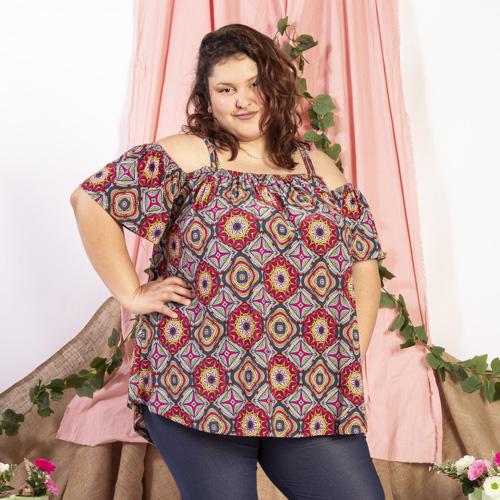 HERMOSA REMERA TIPO PAISANA CON VOLADOS SOBRE LOS HOMBROS. CONFECCIONADA EN SEDA FRIA. SE ENCUENTRA EN VARIOS ESTAMPADOS.