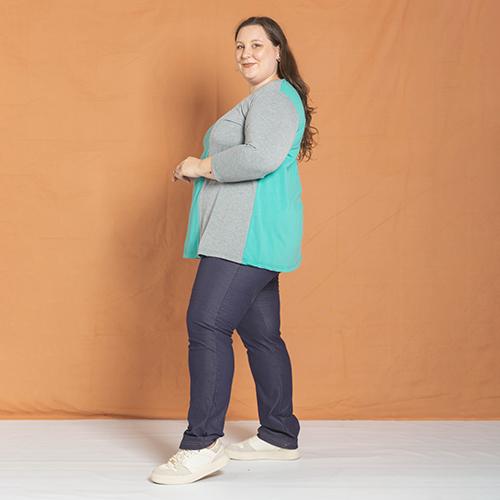 Remera de modal cuello redondo combinada en dos colores. Cuerpo en color, destacando un lateral y manga siempre en gris.