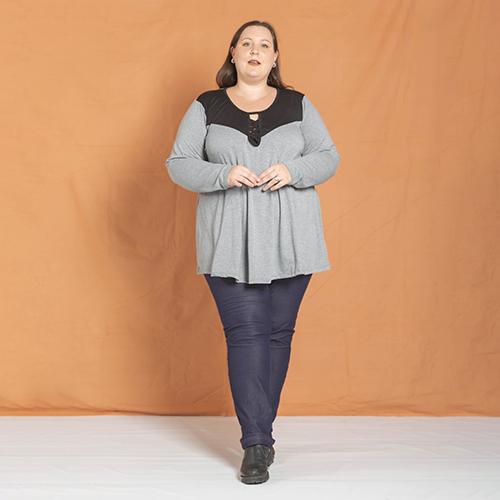 REMERA CONFECCIONADA EN MODAL CON CANESU DELANTERO EN OTRO COLOR Y TERMINADO EN FORMA DE PICO CON DETALLE DE TIRAS CRUZADAS EN EL CENTRO.