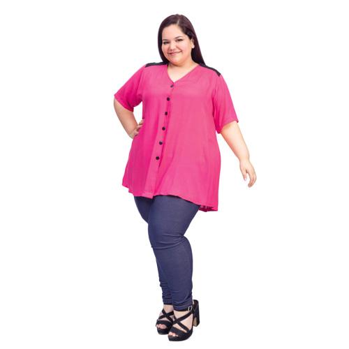 CAMISOLA AMPLIA DE FIBRANA LISA COMBINADAÂ CON CANESU Y BOTONES, TIENE MANGA CORTA.