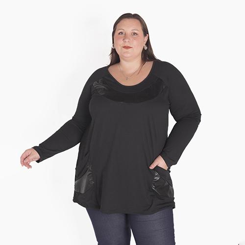 remera de modal con delicados detalles en cuerina en bolsillos y canesu. Con mangas rangland.