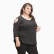 REMERA DE MODAL CON DETALLE DE FALTANTE EN MANGAS Y TIRA CON ARO. TIENE MANGAS 3/4.