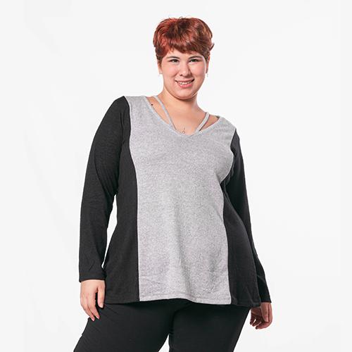 REMERON EN LANILLA A DOS COLORES, TIENE ESCOTE EN "V" CON DETALLE DE TIRA
