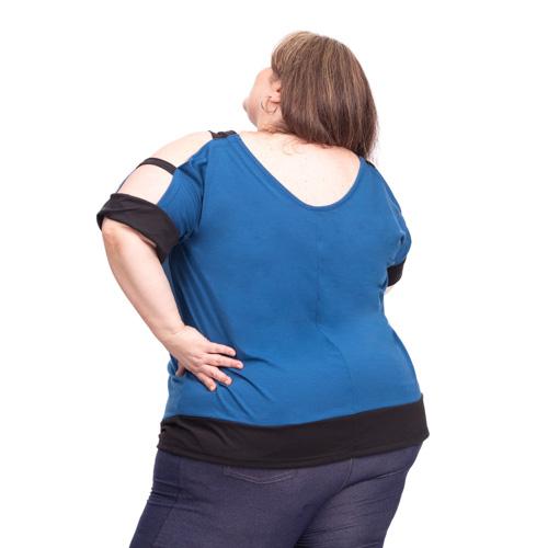 REMERA DE MODAL COMBINADA EN DOS COLORES. ES UNA PRENDA MUY MODERNA, DEJA AL DESCUBIERTO LA PARTE SUPERIOR DE HOMBROS Y BRAZOS.