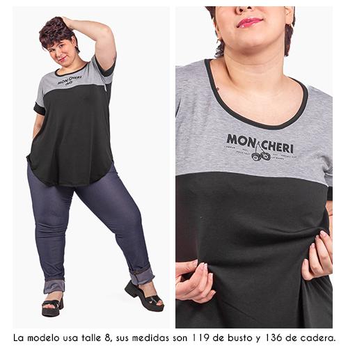 REMERA COMBINADA EN DOS COLORES CON ESTAMPA EN EL CANESU
