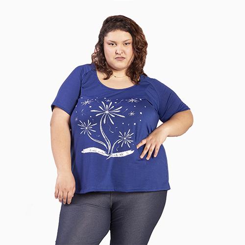 REMERA LISA DE MODAL Y MANGASCORTAS RAGLAN, CON ESTAMPA EN EL DELANTERO.