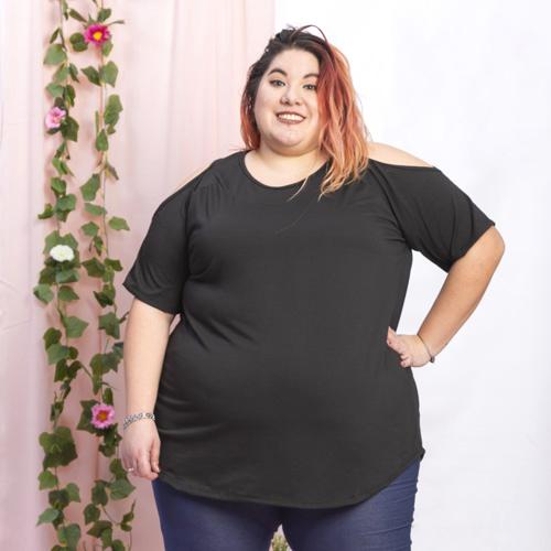Este remeron realizado en modal tiene un corte acampanado con linda caida y un detalle de faltante en los hombros, que le otorga un gran calce a la prenda y favorece la figura.