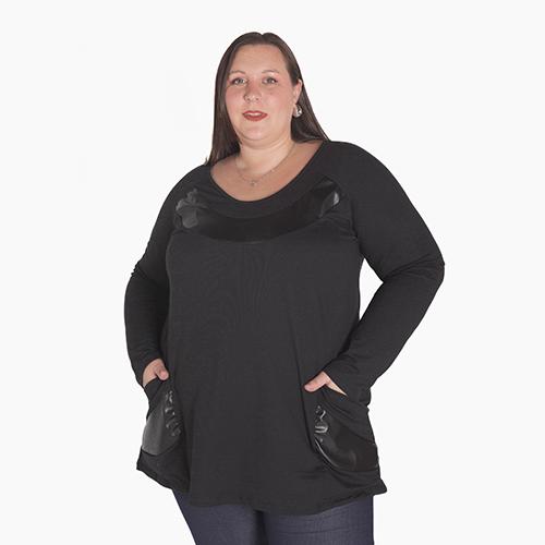 remera de modal con delicados detalles en cuerina en bolsillos y canesu. Con mangas rangland.