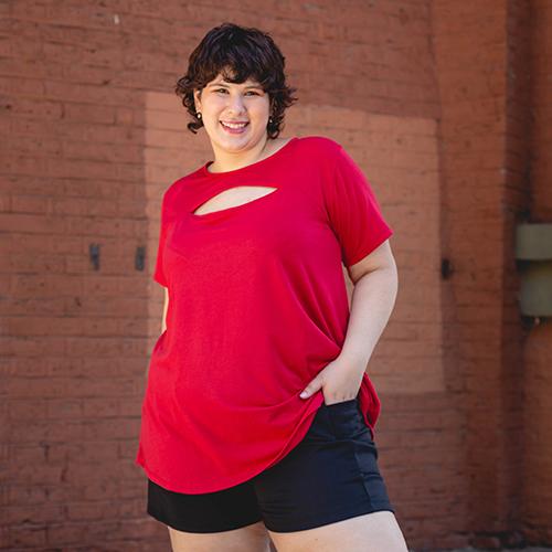 REMERA CON GOTA HORIZONTAL EN MODAL DE UN SOLO COLOR. TIENE MANGAS CORTAS.