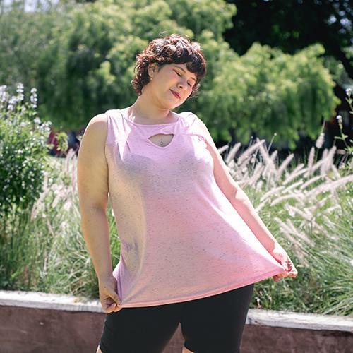 MUSCULOSA CONFECCIONADA EN BUTONE CON DETALLE DE TRIANGULO EN EL DELANTERO. ES UNA PRENDA MUY SUELTA, LIVIANA Y FRESCA