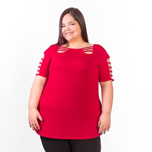 REMERA DE MODAL CON DETALLE DE TIRITAS EN LINEA HORIZONTAL EN EL DELANTERO Y ESPALDA.