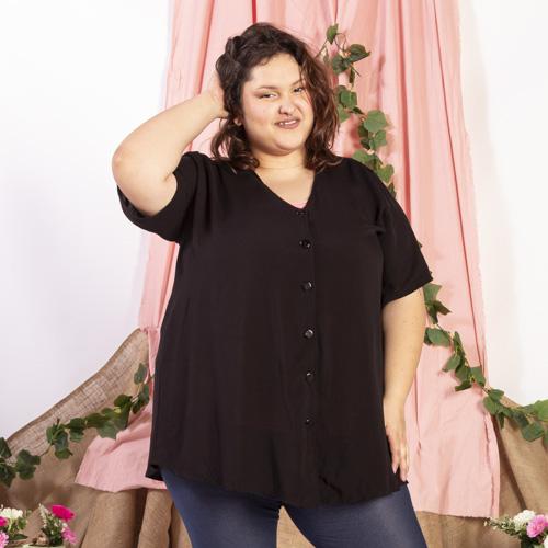 CAMISOLA AMPLIA DE FIBRANA LISA COMBINADA CON CANESU Y BOTONES, TIENE MANGA CORTA.