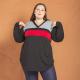 Remera manga larga de linea evase en base negra y combinada con dos franjas de color.
